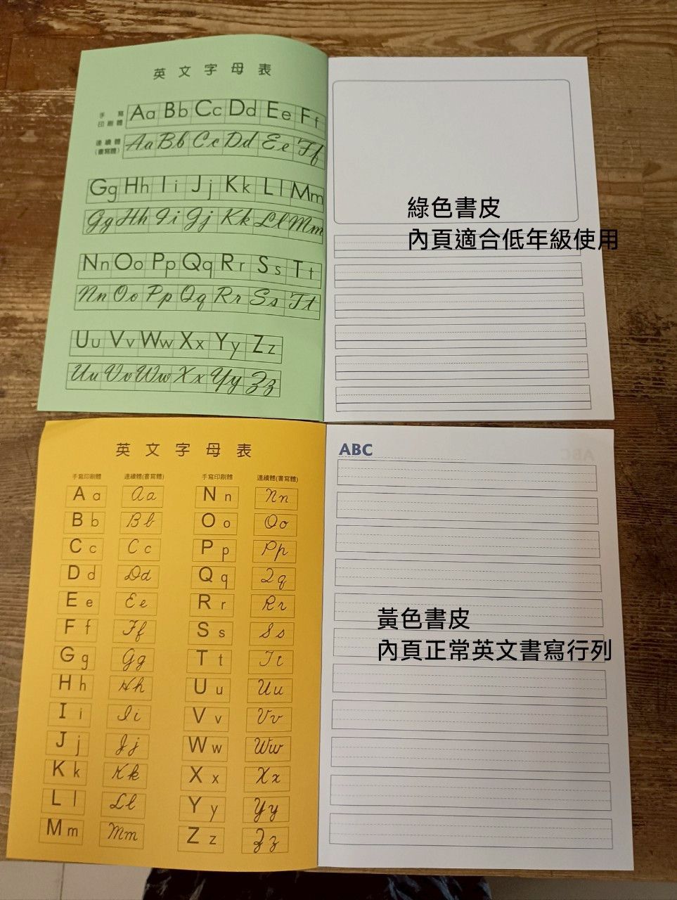 商品詳情 華德福英文課程使用工作本.黃色書皮*內頁有11行可書寫格式.*長26cm.寬19cm,共有20張內頁. 綠色書皮 *內頁有 1空白方格+ 6行可書寫格式. *長26cm.寬19cm,共有20張內頁. 華德福工作本 【英文書寫練習本】 TWD $25 TWD $25